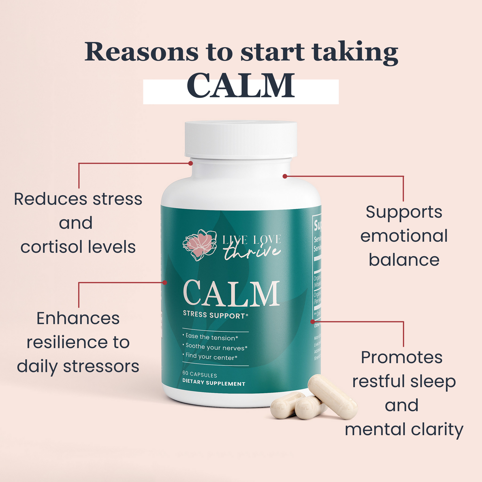 CALM is formulated with ashwagandha, a time-honored adaptogen studied for its ability to reduce stress and support emotional well-being — naturally, without hormones.
